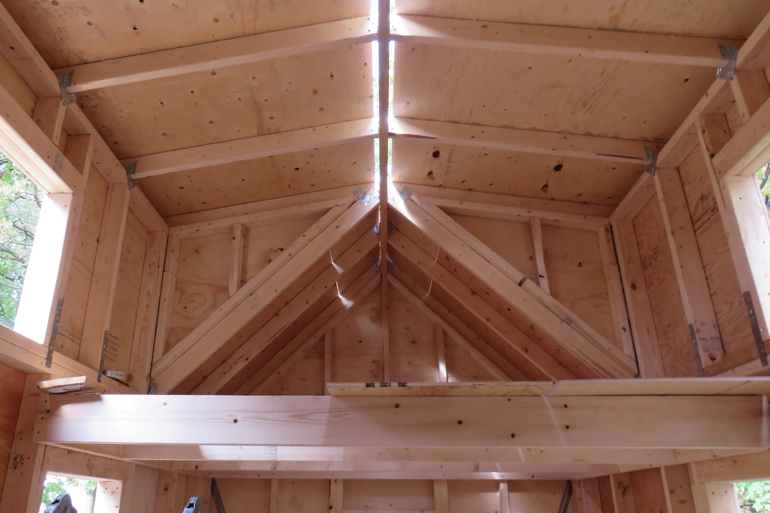 Toiture : Pour une toiture monopente avec faible inclinaison, je recommande des 2x6 aux 16'' c/c. Pour une toiture à deux pentes, des 2x4 aux 24'' c/c peuvent suffire, mais je préfère les 16'' c/c pour une meilleure solidité et facilité d’installation.
